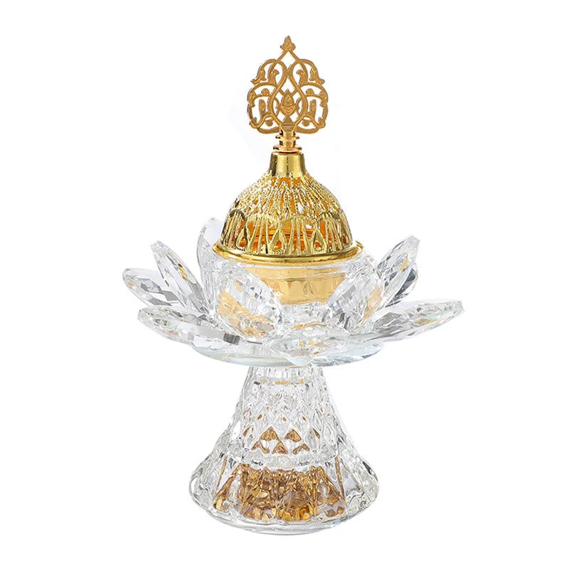 Gold Bright Diamond Lotus Crystal Glass Incense Burner Middle East Aromatherapy Living Room Decoration Arabic Glass Incense Burn