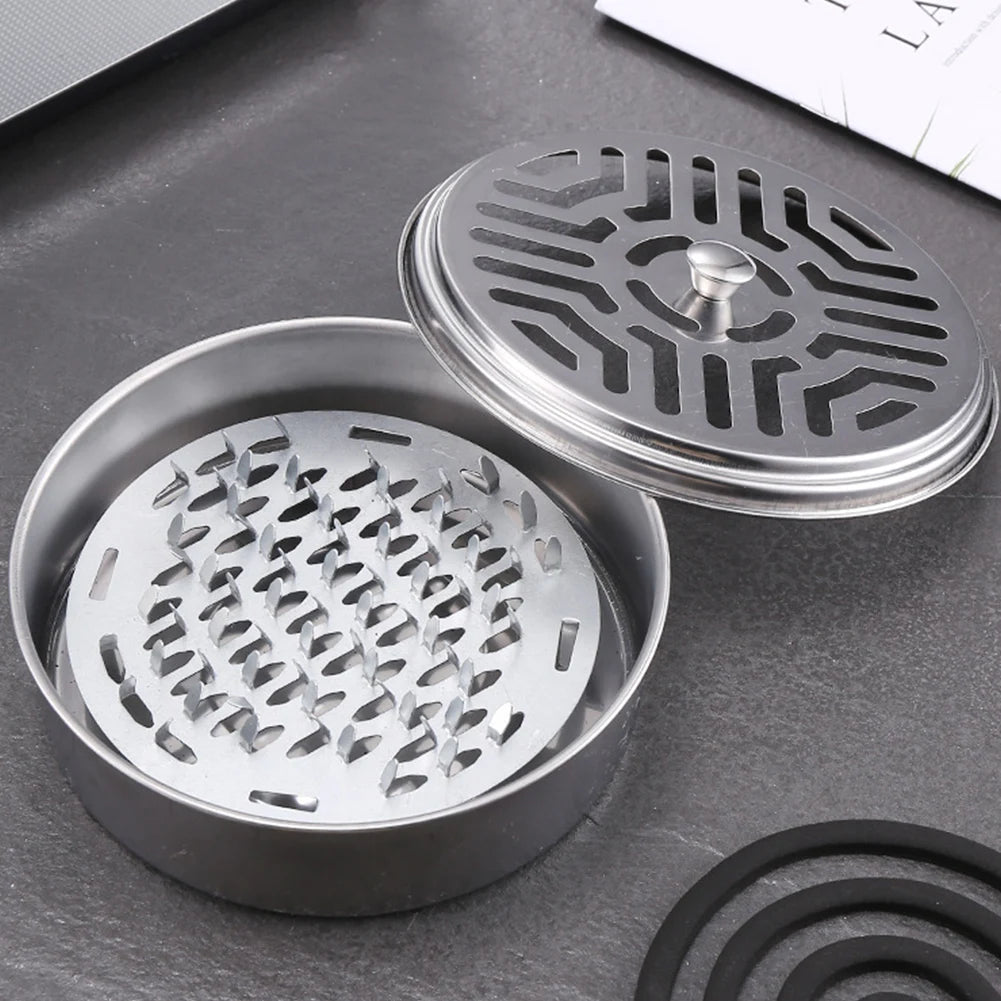 Mosquito Spiral Holder Box Stainless Steel Anti-Mosquito Spiral Box with Lid Mosquito Incense Holder for Camping Fishing