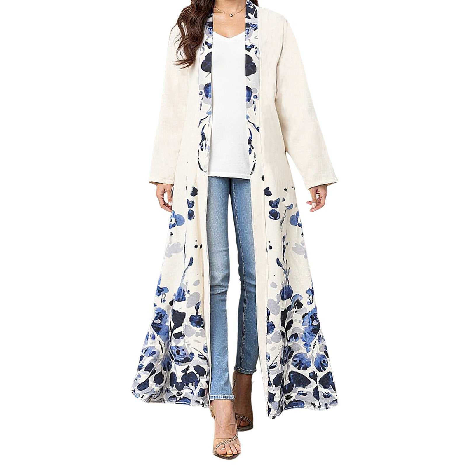 Islamic dress for women with floral print, long sleeves, open front, ankle length for perfect coverage; Loose fit design for a comfortable wearing experience, simple and fashionable, making you more elegant and unique